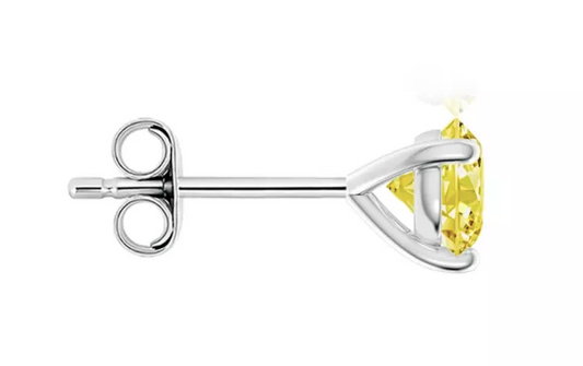 14K White Gold Martini Setting Fancy Yellow Lab Grown Diamond Stud Earrings 0.51